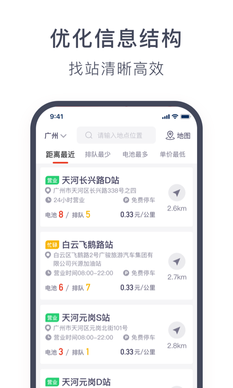 筛选换电站,根据距离、排队情况、电池数量排序结果;