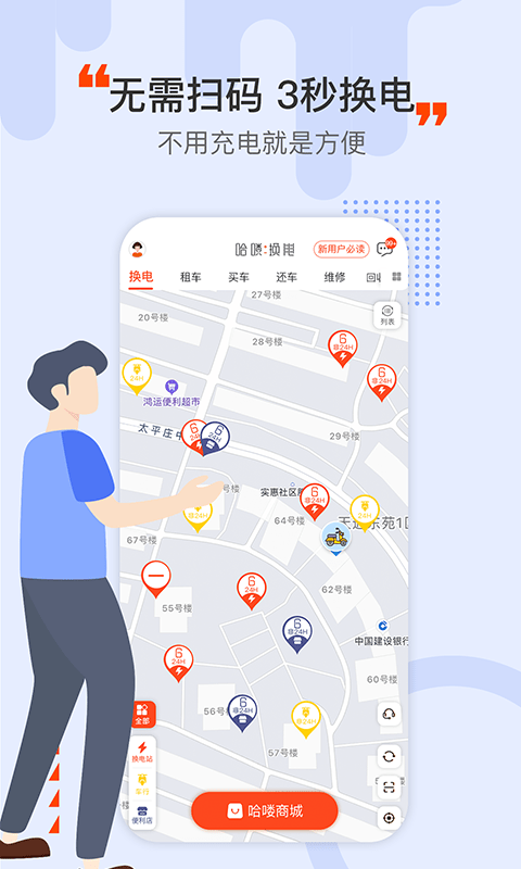 哈喽换电电动车app这是一个提供便捷换电服务支持的平台,通过线上查询站点的方式一键快捷导航目的地,支持线上预约、缴费等便捷功能,实时查询充电状态,是适应于日常生活的换电助手。