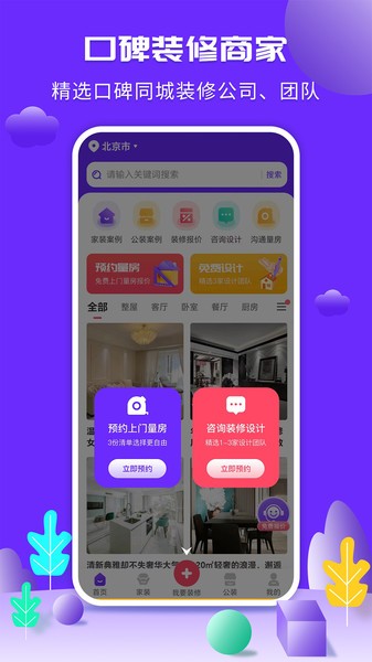 住馨家最新版是提供家庭装修设计服务的家装平台,精选口碑同城装修公司、团队,提供办公、娱乐、餐饮、场馆设计案例可以浏览查看,获取灵感,支持预约上门量房,精选1-3家装修团队设计方案选择,带来一站式的装修服务体验!