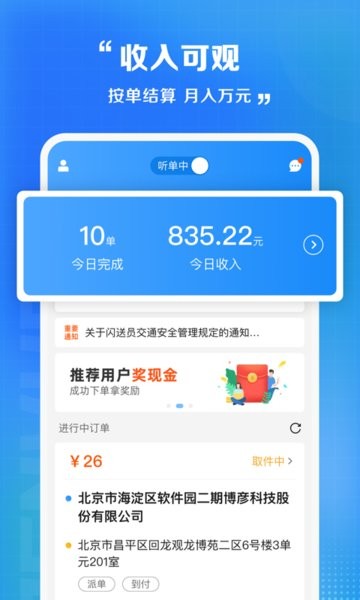 业余时间兼职配送的赚钱APP,帮助人们利用业余时间在闪送服务中高效接件、送件的赚钱工具。