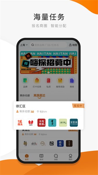 嗨探软件是一个测评类的手机应用,功能强大又有趣。它涵盖餐饮、酒店、旅游等多个行业的测评任务,用户可以自由承接各种任务,赚取收入的同时还能体验各种生活乐趣。软件亮点很多,比如提供优惠券、附近美食查找、完成任务就能赚钱等,特别是可以免费使用品牌美食并赚取收益,感觉真的很好玩。操作也很简单,定位方便,任务规则详细,容易上手。作为吃货,这个软件简直是宝藏,既能省钱又能享受美食,还能赚钱,太棒了!