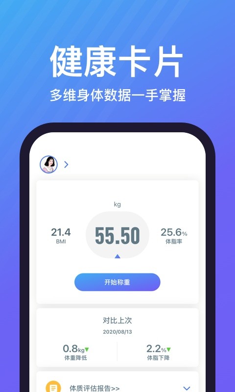 支持通过蓝牙4.0连接体重秤和脂肪秤,自动获取多种人体参数