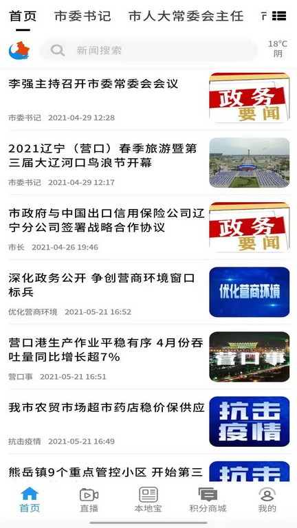 1、打开掌上新营口安卓版,点击“融媒直播”