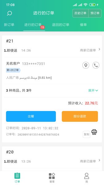 1、商家订单管理--比如接单,拒单...
