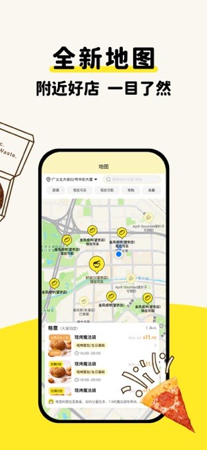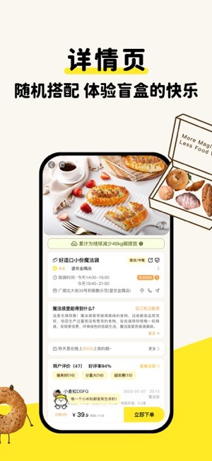 应用的功能也很强大,首页上有各种品牌和种类的食品,随便挑就行。最让我喜欢的是“随机搭配”功能,感觉像开盲盒一样惊喜!而且还能轻松找到附近的店铺,地图功能简直太方便了。另外,这个平台背后的理念也特别让人感动——它不仅是一个购物工具,更是在倡导一种珍惜粮食、绿色低碳的生活方式。