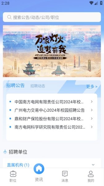 南网微招聘最新版即为中国南方电网员工招聘系统,是南网官方推出的招聘求职平台。如果你也想进入南方电网上班,就可以通过本软件搜索相关的招聘信息公告,投递相关的职位,等待进入南网的机会。