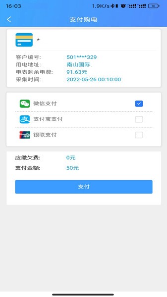 通过应用软件实现银联、支付宝等多种支付方式的电费缴纳业务。