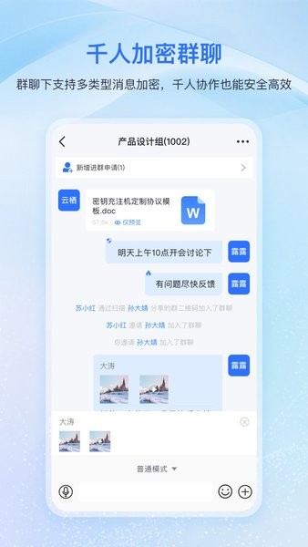 群聊下支持多类型消息加密,千人协作也能安全高效。