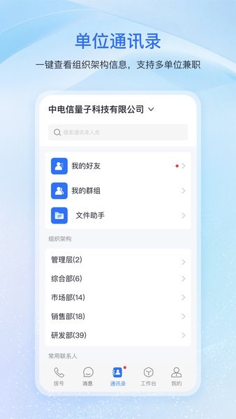 量子密信是一款由中国电信推出的手机办公软件,主打安全功能。它结合了量子加密技术和即时通讯技术,提供加密通话、消息传输、文件存储等多种功能,确保用户数据的高度安全性。软件整合了通讯、会议、审批、考勤等办公需求,所有操作和信息传输都经过加密处理。