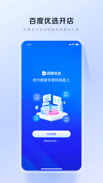【百度优选商家端】百度电商旗下的商家一站式店铺经营移动工作台,帮助电商商家随时随地、方便高效地管理生意,店铺经营一手搞定,亿万生意,触手可及!