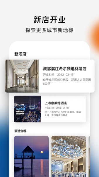 全新首页功能升级,提供未来行程预览、热门目的地推荐、了解新开业酒店、酒店浏览历史、帮助用户快速预订、更好地规划出行。