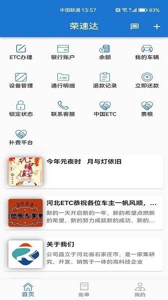 荣速达etc是一款为车主提供高速etc通行服务的应用软件,支持etc办理、设备管理、补费平台、锁定状态等服务,余额账单明细一目了然,通行明细、退款记录随时查看,实时更细推送相关资讯信息,在线添加管理,操作简单便捷!