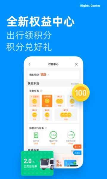 全新权益中心,出行领积分,积分兑好礼