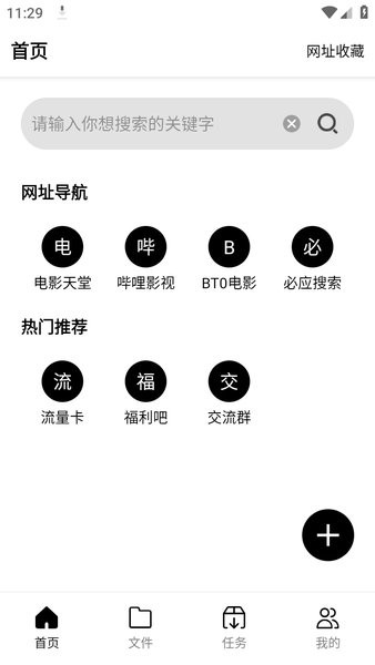 打开飞驰下载后,点击右下角的“+”,如图所示;