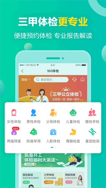 健康160(原就医160)一站式专业医疗健康服务平台!以专业、便捷为服务宗旨,致力于为用户打造“互联网+医疗健康”的就医新模式。以互联网手段连接医院、医生和患者,围绕诊前、诊中、诊后全流程健康场景,提供从体检、挂号、问诊到健康商城、健康管理等一站式医疗大健康服务,打造“以用户为中心”全生命周期的医疗健康服务平台。