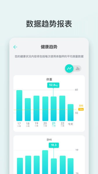 通过图形化展示,可以清楚看到每次健康变化趋势,走势清晰;