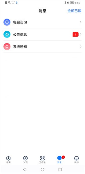 【通知中心】功能包含医院公告、内部协作通知、日常任务提醒等,实现院内信息的实时互通。