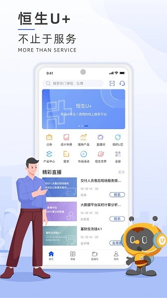 恒生U+是恒生电子的移动在线服务平台,源自恒生创立伊始即秉承的“客户第一”初心。我们聚焦“服务”、“知识”、“产品”三大核心场景功能,希望为客户提供全方位交互式服务体验,带来持续的价值增长。