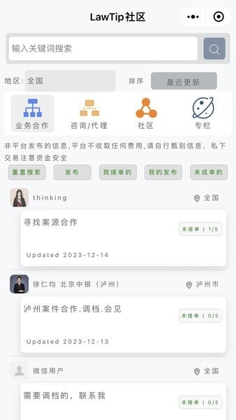 律师云助理手机版是功能丰富强大的律师工具,带来裁判文书查询、lpr利息计算器、律师费计算等常用工具可以使用,还提供业务广场、诉讼保全、合同模板、咨询律师服务,帮助解决法律相关问题,更提供案件管理、事务管理、日程管理、业务合作等功能,满足个性化需求!