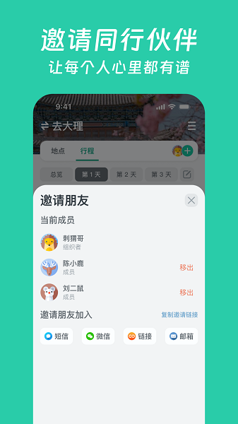 您还可以邀请朋友加入旅行,实时共享您的旅行计划的日程安排,并且一起调整旅行计划。