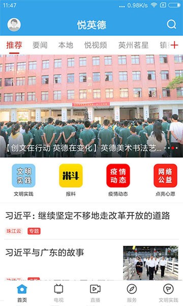 悦英德新闻平台是一个非常实用的地方资讯发布工具,它不仅提供了丰富的本地新闻和党建内容,还能让用户轻松获取各种政务服务和生活服务信息。这个APP的功能很全面,比如高清视频直播、办事预约、热点关注、党建学习等,满足了用户多方面的需求。