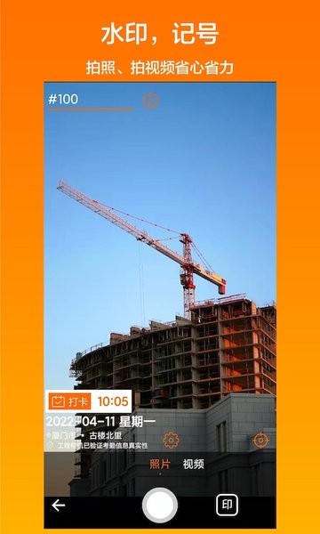 工程相机app安卓版让用户随时可以使用相机来记录工程的进度,许多专业的工程水印可以在软件之中使用,软件适用于非常多的工程,无论位置信息,还是时间、经度纬度都可以作为水印添加在相机上面。