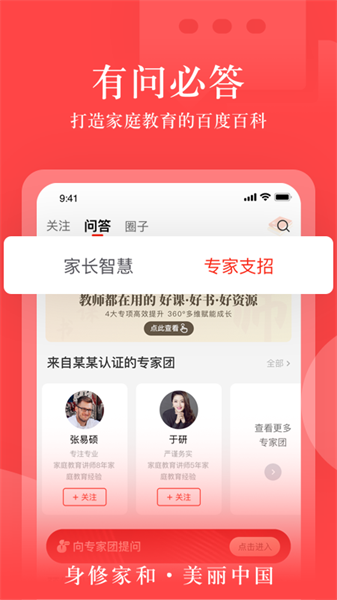 关于育儿规律、亲子关系、夫妻关系、家庭关系、学习方法、孩子培养等方面的疑惑和困扰,都能在问答找到相关经验和方法。更有专家支招为您针对性答疑解惑,根据您发布的问题提供专业建议,每天利用碎片化时间分享、学习、成长。