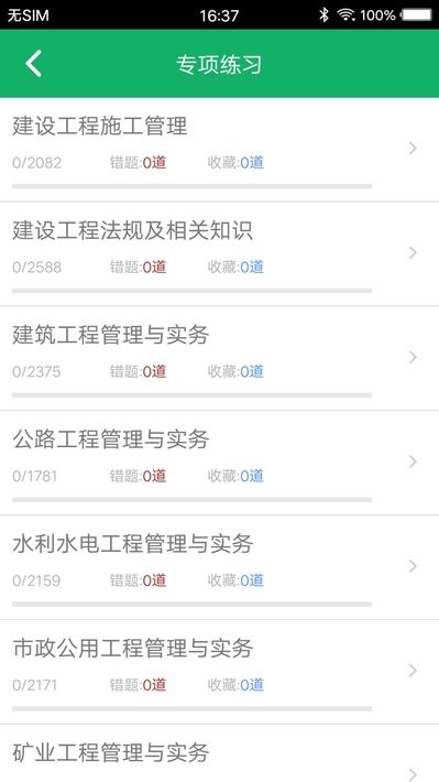 根据考试内容提供了专项练习,选择知识点即可进行做题。