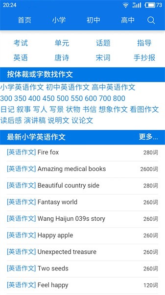 1、包括大量的小学初中高中作文例子,各年级的各种作文写作。