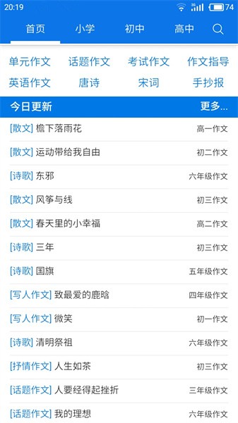 优秀作文大全app是一款旨在帮助学生更好的学习如何写作的应用软件,我们收录了近年高考满分作文,高中作文,中考满分作文、初中作文供学生鉴赏,还给喜欢写作的同学们提供了大量的素材,以便学生们能写出更加好的作文出来。适用于小学,初中,高中学生参考,再也不用花钱买纸质作文材料了。