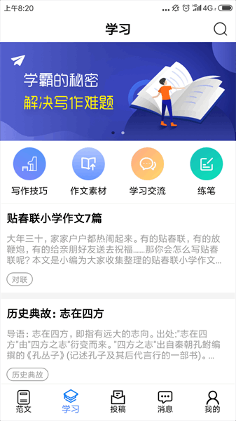 好学生作文app是一款免费提升作文写作水平的学习软件,主要提供小学生作文、初中作文、高中作文、考试真题作文、中考满分作文、高考满分作文等优秀作文范文大全,还提供作文写作素材,写作技巧等作文学习资料,同学们还可以在这里写作文以及学习交流。