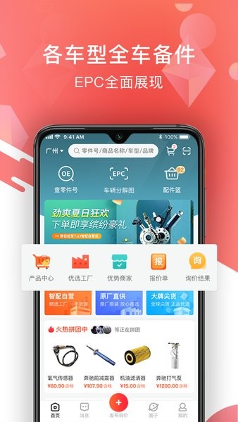 产品同样面向配件商提供快速精准发布询价、智能化商品检索、EPC找件、OE替换号查询等便捷性行业工具。