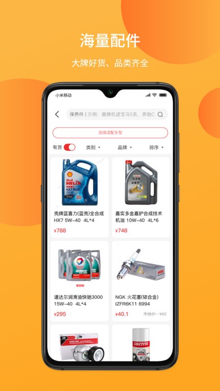 汽配商城:vin码、车系、品牌、类别一键查询,随时随地下单,方便快捷。