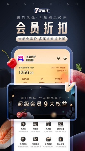 每日优鲜软件是超级好用的帮助用户们能够购买各种生鲜食品类商品的手机超市app,在这里用户们能够找到超齐全的商品种类,生鲜蔬菜、肉禽蛋奶、海鲜水产、新鲜水果、甜品蛋糕、水果鲜花、乳品烘焙、酒水饮料、休闲零食、粮油米面、速冻食品、日用百货等等等等全都有,让用户们能够在这里一次性买全自己想要的所有商品,享受便捷美好的生活。