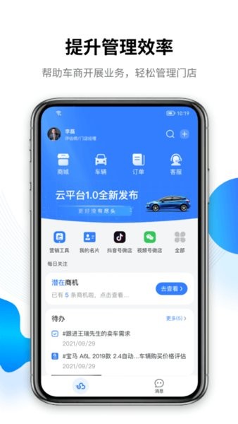 车赢云平台app为车商带来更加方便的办公软件,用户可以使用软件提升自己的管理效率,软件之中拥有许多非常好用的工具,让用户可以使用这些工具来管理自己的经营。