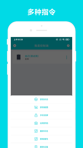 远程助手,一款可以远程管理手机的APP。APP里面支持管理模块和被管理模块:管理模块可以添加远程设备,并对远程设备进行管理;被管理模块可以设置链接密码和开关,并实时返回数据给管理端。通过该APP,可以实现:获取远程设备状态、获取设备截图、远程锁屏、远程拍照、查看设备属性等操作。