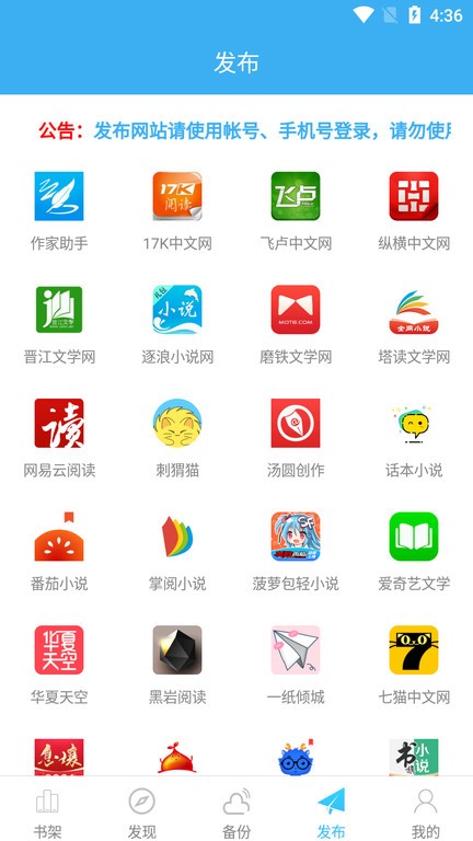 4.增加:发布平台增加多个小说网站,优化使用体验。