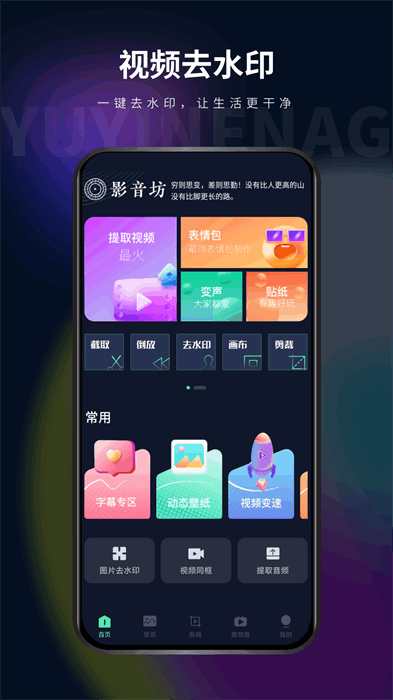 影音坊app是一款手机视频编辑应用软件,界面简洁,操作简单,小白也可以轻松上手,一键制作属于你的个性视频,智能裁剪,支持各种格式文件导入导出,快来下载吧!