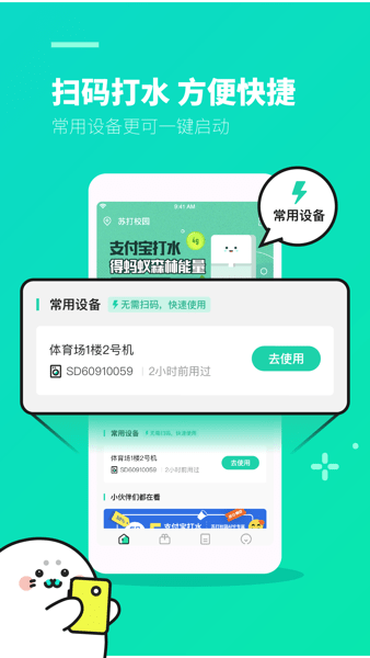 苏打校园软件是一款主要为校园生活提供打水饮水服务的应用app,通过连接设备,一键扫码打水,快速启动使用,方便快捷,还支持免密支付,得蚂蚁能量,通过积分兑换商城礼品,享受更多福利优惠,便利校园生活,使用简单易上手!