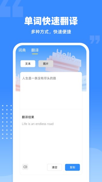 输入您需要翻译的一段文字或ocr识别本地图片翻译,可朗读可复制