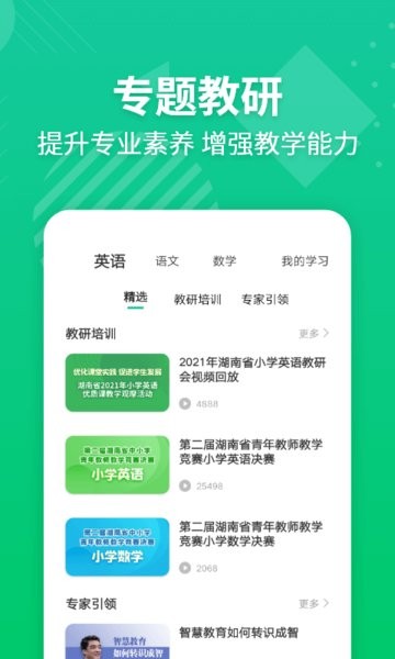 这款软件的一大亮点是海量教研资源,帮助老师提升专业素养和教学能力。比如“专题教研”模块提供专家讲座、口语训练等优质内容;“同步教材”则覆盖多版本小学英语教材,满足不同地区教师的需求。