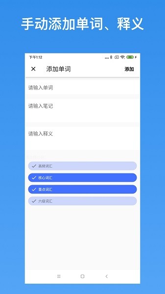 *「手动添加生词」:可自行编辑单词释义、备注。