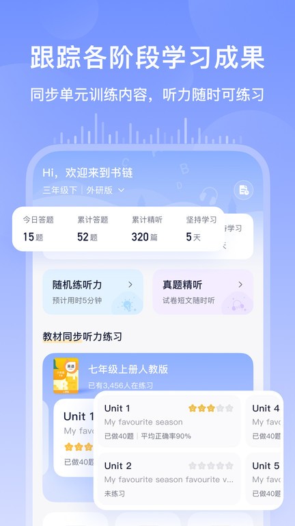 书链,专注小初高听力、听说练习。超2100家图书出版商入驻,接入图书品种超30万个,累计服务读者超2.8亿。修炼好成绩,就用书链APP。