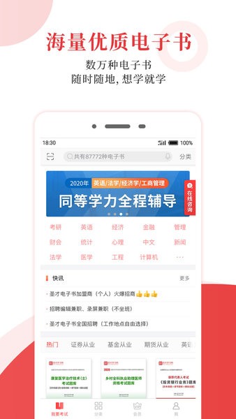 各类考试及经典教材配套辅导电子书、视频、题库、直播。