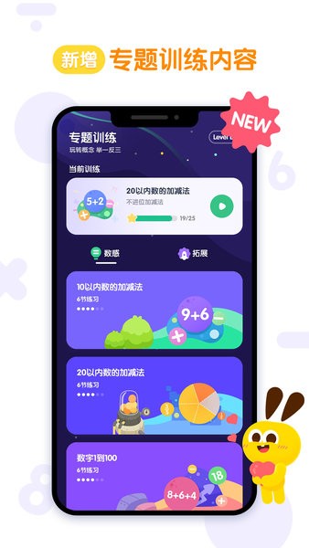数感星球是一款创新型的游戏化数学学习App,专为小学阶段的孩子打造。将严谨的数学知识和趣味游戏相结合,为孩子构建一个多元的数学问题探索空间,循序渐进引导孩子主动解决问题,从而深刻理解抽象的数学原理,为数学学习打下稳固的基础。包含了3大训练专题、4大训练模式,超过110+知识单元、5000+训练内容。