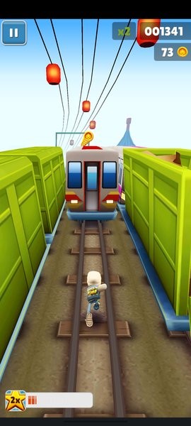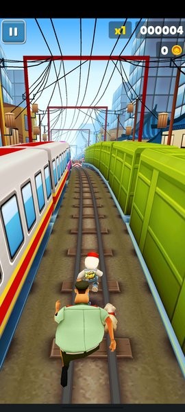 3、背景设定在地铁铁轨上,玩家要帮助主角和他的小伙伴们躲避JC的追捕,在各种障碍和迎面而来的火车间飞奔。