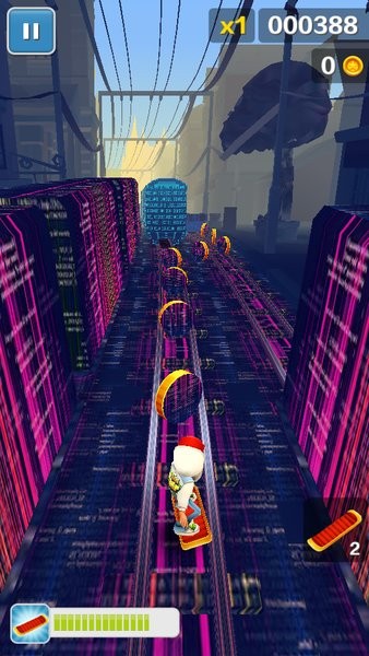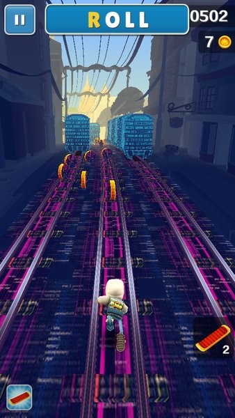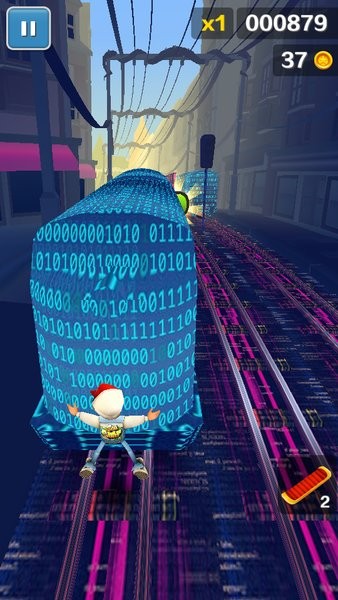地铁跑酷乱码之城版本相比于原版别有一番风味,在原版的玩法基础上,搭配上新奇的画风,让地图更加的生动,像是玩了一个新的游戏一样。这种鲜艳的色调削弱了跑酷游戏的紧张气氛,即使一个不小心撞到墙壁也不会非常懊恼。通过火车和道具的设定,让玩家在三个空间上跑酷。第一个空间是普通的地面,与其他跑酷无异;第二个空间是火车顶,玩家可以通过打开的车厢在火车顶跑酷;第三个空间可以通过道具实现,玩家将会飞起来,在天空中一路向前。游戏在划动的操作上游戏保证了更高质量的顺畅感,做到了所见所划即所得,延迟很低操作灵敏,体验非常不错。作为地铁跑酷的魔改版本,还是非常值得大家尝试的!