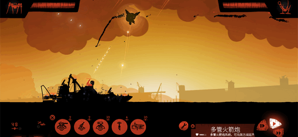 玩家需武装并保卫巡洋舰,通过收集资源,升级战舰,积累护卫舰、火炮、轰炸机、激光器、隐形发电机等武器。