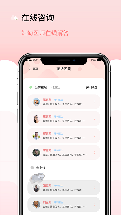 1.软件特别给用户提供了线上问诊服务,可以帮助用户去处理很多的母婴健康问题。