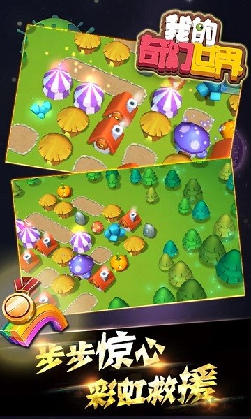 3、游戏中的玩家能感受到经典的梦幻森林画面,拥有棉花糖般的建筑和贱萌的小怪物,作品中的你要合成出独一无二的景色。